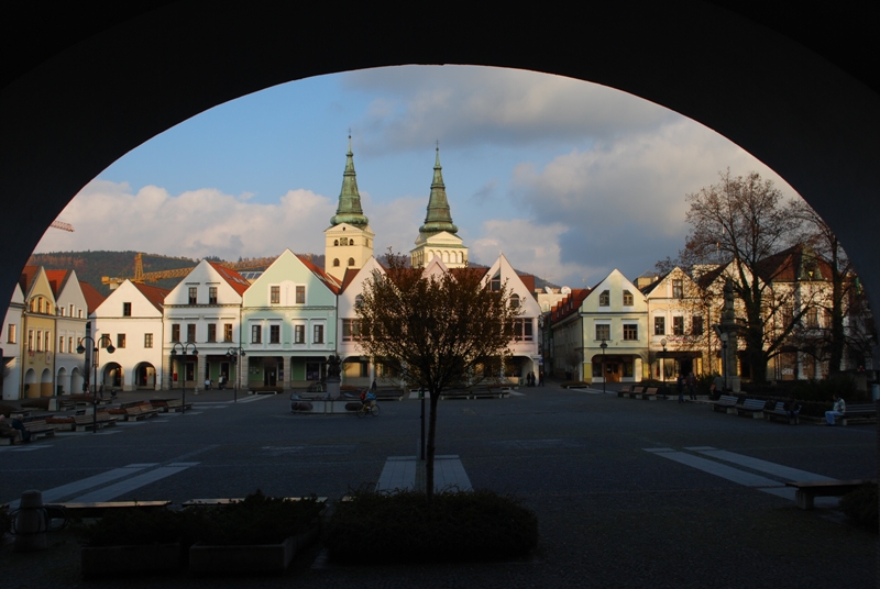 The sightseeing of Žilina starts at the Mariánske námestie square, with charming arcades. The Pillar of the Virgin Mary with the statue of the Immaculate erected in order to commemorate the conclusion of re-Catholization in 1738 stands in its centre.